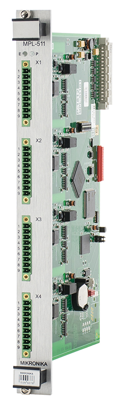 Die Kommunikation mit einem übergeordneten System wird im MODBUS RTU bzw. DNP 3.0.-Protokoll realisiert. Die Pakete kommunizieren untereinander über einen LVDSv1- Bus. Im räumlich verteilten Steuergerät besteht Möglichkeit, bis zu 24 Modulen MPL-501/511 anzuschließen. Das Paket ist zusätzlich mit einer RS-232 Wartungsleitung zur Prüfung und Parametrisierung des Moduls ausgestattet.