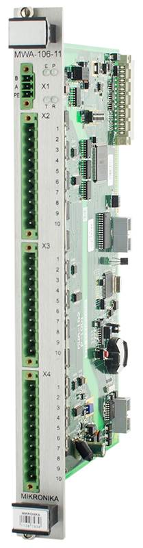 MPA-408-xx – это блок обработки и обмен данными, выполняющий функцию центрального процессора в устройствах автоматики станции, а также в устройствах промышленной автоматики. Модуль измеряет напряжение, токи и частоты, рассчитывает мощность, конвертирует протоколы и записывает события. MPL-408-xx также осуществляет внутренний обмен данными с другими модулями BCU. Все измерения, ввод и управление, необходимые в BCU, выполняются с использованием совместимых с CPU аналоговых модулей ввода и вывода, двоичных входов, выходов управления, измерений температуры и других. Модуль MPA-408-xx также имеет последовательные каналы передачи данных как для оптоволоконной, так и проводной связи. Каналы RS-485 и RS-232 можно настроить с помощью программного обеспечения pConfig.