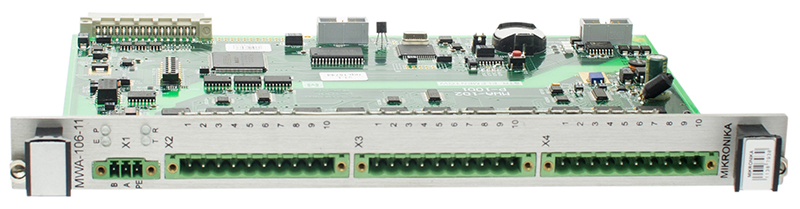 Модуль аналоговых входов MWA-1xx предназначен для реализации управления и сигнализации с помощью токовых сигналов. Модуль может работать как элемент контроллера SO-52v1x в распределенной телемеханике или работать с другими объектными устройствами системы SYNDIS.